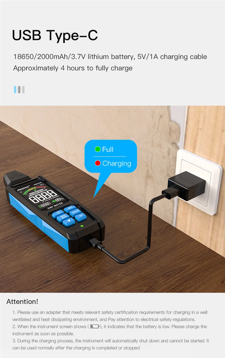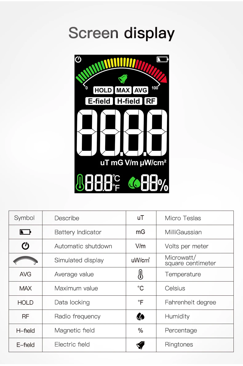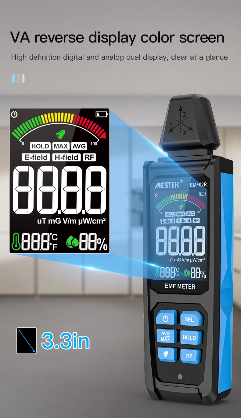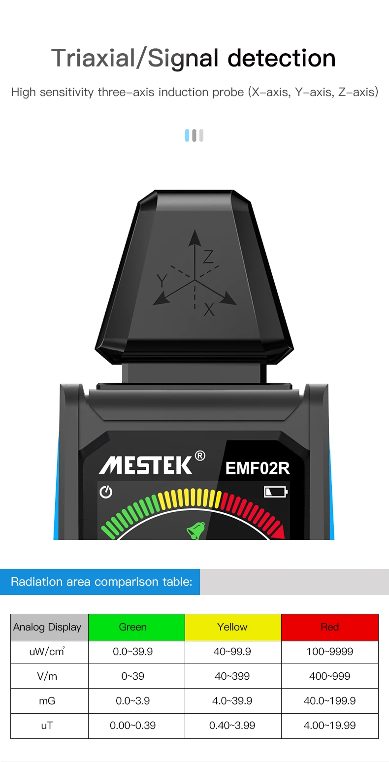 مقياس EMF MESTEK – كاشف إشعاع المجال الكهرومغناطيسي نطاق تردد عالٍ من 30 ميجاهرتز إلى 8 جيجاهرتز